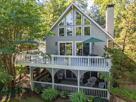 This RECENTLY RENOVATED 3-bed 3-bath GOLF COURSE-FRONT home features stunning POND and 9TH-TEE/3RD HOLE VIEWS and is conveniently located along a QUIET CUL-DE-SAC within a short 4-minute walk from the golf clubhouse and pub! Bask in sun on the WRAP-AROUND BACK DECK or admire the pristine landscaping from the breezy SCREENED-IN BACK PORCH! Prepare meals in the spacious EAT-IN KITCHEN, featuring flawless corian countertops, solid maple cabinets, stainless appliances, hardwood floors, and a character-rich OVERHEAD PERGOLA with bar seating. Entertain friends in the FINISHED BASEMENT with WET BAR and utilize the bonus room as a HOME OFFICE, GYM, or 4TH BEDROOM! Rest easy in the FIRST FLOOR PRIMARY SUITE, featuring a NEWLY REMODELED RESORT-STYLE PRIMARY BATH, knowing your cars are protected within the DETACHED 2-CAR GARAGE with an oversized STORAGE ROOM! Enjoy the unlimited amenities that Lake Monticello has to offer, such as LAKE, BEACHES, POOL, CLUBHOUSE, GOLF, WALK/RUN TRAILS, and more!