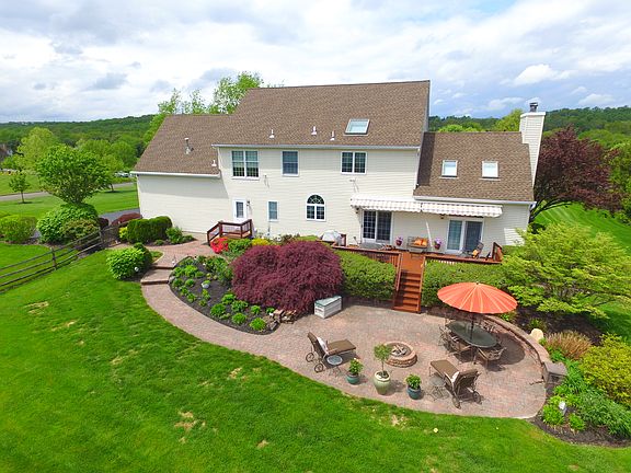 Down a long driveway, set back from the road on a nearly two-acre parcel of land, the impeccably presented home at 7 Long Way enjoys the serenity of its location. Backing up to over 50 acres of preserved farmland the home is just a quarter mile from Double Brook Farm and the charming town of Hopewell. A gently winding paver path leads to the entrance, giving way to a two-story foyer highlighted by an arched window and picture frame moulding leading up the staircase. The formal living room and dining room have crown and chair rail molding, while the cathedral ceilinged great room has palladian windows, skylights, a fireplace and wet bar with built-in cabinetry. French doors lead from the family room to the back deck and patio. The updated kitchen has a center island with a 5 burner cook top, stainless steel appliances, pickled wood cabinets, granite counters, recessed lighting and a breakfast area with sliding doors opening to the back deck for al-fresco dining. The master suite has a deep tray ceiling and a bright master bath with a skylight, spacious tub and stall shower. Three additional, sizable bedrooms share a hall bath. The backyard accommodates outdoor living at its finest, with picturesque views from the deck and paver patio. Additional outdoor features include a retractable awning over the deck, a built-in fire pit in the patio and a split rail fence. Professionally landscaped with beautiful specimen and hardwood trees this home is a must see! 2020-10-01