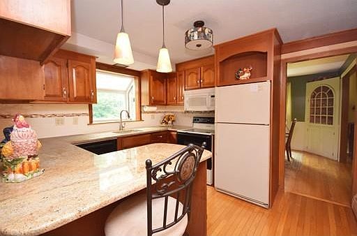 Great Beginnings start here...This Charming colonial is situated just over a half acre lot w/ the amenity of a neighborhood to enjoy. First flr features a warm & cozy family rm w/ brick hearth frplc including pellet stove insert opening to kitchen area w/ all appliances, breakfast bar & granite c tops. Just adjacent the formal dining rm offers built'in's, hdwd flooring opening spacious formal living rm w/ hdwd flrs - perfect for entertainment space & half bth. Fantastic three season sun room located off family rm overlooking spacious back yard oasis w/ beautiful perennial gardens & outdoor deck dining area. Second flr features a generous sized master w/ hdwd flrs featuring a half bath, three additional spacious bdrms w/ hdwd flrs & full bth . Come and see all the warmth and charm this home has to offer! Seller states upgrades include pellet stove insert (2014), kitchen remodel (2016) & energy audit/added insulation (2015).