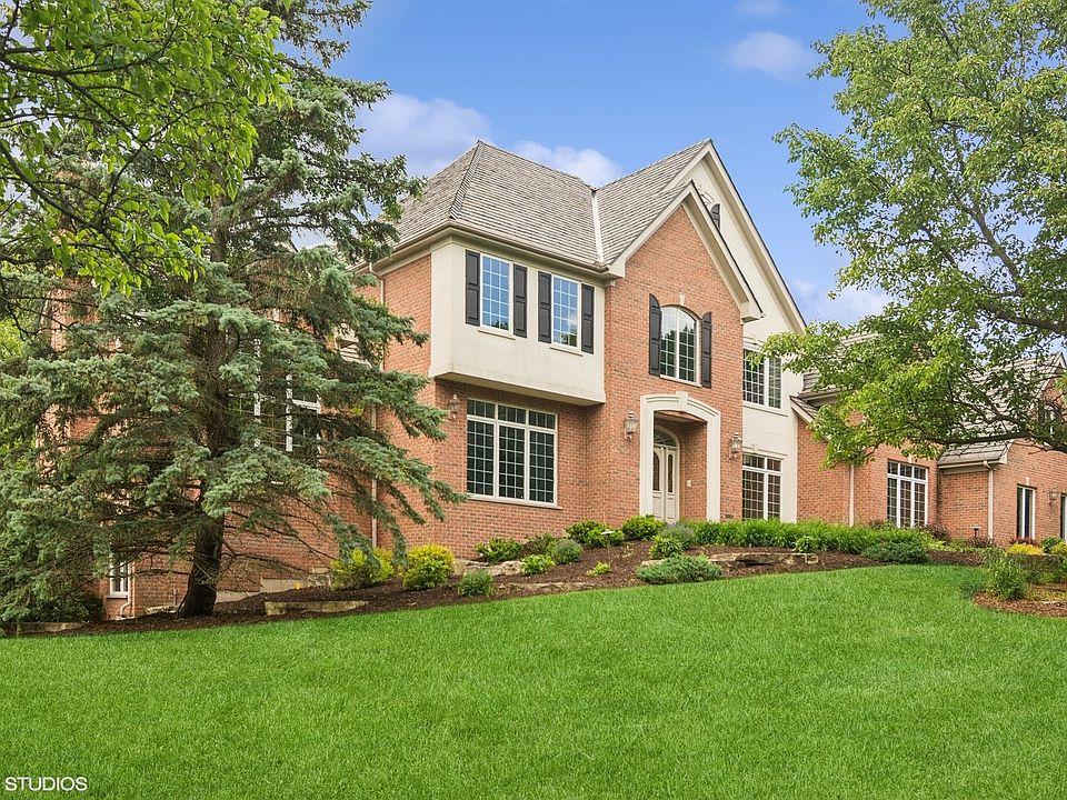 A beautiful tree-lined drive leads to this custom brick retreat perched on five picturesque acres in highly desirable Barrington Hills. Tucked at the end of a cul-de-sac, this property sits privately among the estates of the gentle rolling countryside yet is just minutes to the charming Village of Barrington. A grand and welcoming two-story foyer sets the tone for luxury living, featuring a stunning Swarovski chandelier that adds a touch of elegance. The home boasts a formal front staircase and a convenient back staircase for easy access to the second level. The spacious kitchen provides a space to create culinary delights with commercial-grade appliances, lots of granite counter space, cabinets, an island and pantry and views of the peaceful yard. It opens to a bright and welcoming breakfast atrium, a perfect place for morning tea or evening cocktails. Also adjacent is the two-story great room with floor to ceiling fireplace and windows. French doors lead to the formal dining room across from the elegant dining room with a fireplace and dentil crown molding. Additionally, there's a large convenient laundry room, one full and one-half bath and a separate library with a fireplace. Upstairs, the master suite is a true retreat with a lavish bathroom featuring radiant heat, a spa shower, and a jetted tub. It also includes a large dressing room, with plenty of walk-in closet space and a sitting room easily used as a private gym. Three more bedrooms, one ensuite and two sharing a Jack and Jill bathroom, complete the second level. The walkout lower level offers flexible living space, including a game room, wet bar, and a family room with a fireplace, opening to the paver patio and terraced decks. There's also a spacious fifth bedroom, full bathroom, and an abundance of storage in the nearly 1000 square foot unfinished storage room. The lush grounds include extensive professional landscape and hardscape with a meandering stream, waterfall and pond. A charming bridge leads to the expansive gazebo and there's plenty of room for a pool, barn, rope swings and tree forts or even a soccer field. The home also features terraced decks, a brick paver patio, and a four-car garage for ample parking and storage. Recent updates include a two-year new roof, newer paint, two newer furnaces and air conditioning handlers, and two new hot water heaters, making this home a blend of timeless elegance and modern convenience. Custom-built by highly respected local Harris Builders, this home has had only one owner. This exquisite sanctuary is ready for your personal finishes and decor. Tucked in a beautiful country setting, this home is conveniently located close to Barrington's gourmet dining, boutique shopping, award-winning schools and Metra train station. The Arboretum of South Barrington is also nearby with more shopping, dining and entertainment. Downtown Chicago and O'Hare International Airport are nearby via I90 expressway, just 10 minutes from the property.
