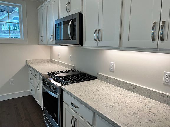 You deserve the carefree lifestyle at Atkinson Heights 55+ community. The 'Cardigan' has 1590 sq. feet and features 2 BR, 2 BA and an open concept kitchen, living and dining area. This modern kitchen has a large island, quartz countertops, white soft-close cabinets, under-cabinet lighting, large pantry closet and S/S Whirlpool appliances including a french-door fridge. The primary suite has engineered wood floors, generous closet space, a spacious fully tiled shower with bench to relax in, and a double vanity with quartz countertops and plenty of storage. The living room has engineered wood floors, recessed lighting, and tray ceiling detail over the dining area. All appliances, including washer/dryer, are included. Each unit has one assigned garage space with storage, and one assigned outside parking space. The community center (to be built) will be a perfect gathering space. Walking paths, dog park, community garden, dog washing station, and proximity to all area amenities and major highways make this a perfect place to call home. Pictures are of a similar unit with upgrades.