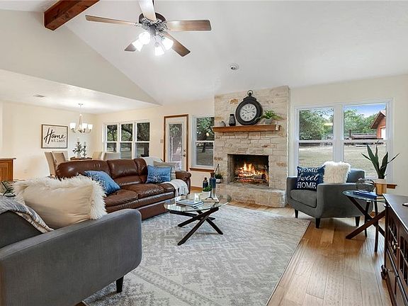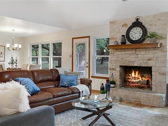 Welcome to your private rustic retreat!This 1-story ranch style home is located on 2 acres w/open views of mature texas oak trees & a hill country atmosphere.Enjoy a spacious, free-flowing floor plan that is perfect for entertaining! Featuring new windows (2019) throughout, a cozy wood-burning fireplace, stunning hickory wood floors, granite countertops with a large center island,new cabinets (2019),upgraded appliances (range-top oven & dishwasher) LOW TAXES! EXCELLENT ISD! eat/shop/movies minutes away!