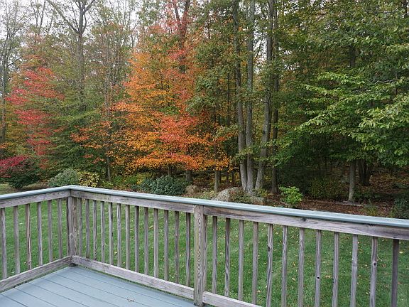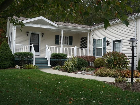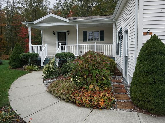 SALE PENDING!!This Home has some Great Features!A Front Porch for starters!A finished two car garage, two propane auxiliary heating stoves, a great basement set up for woodworking or crafting with lots of lighting.Immaculate and nicely detailed with a bonus - the previous owner was an artist and has left some of his amazing talent! Large kitchen with lots of counter and cabinets. Laundry Room. Carpets look like new, some oak flooring.Sliders to a deck facing the privacy of woods.This home also has a lawn sprinkler system. Hillcrest is for People 55+