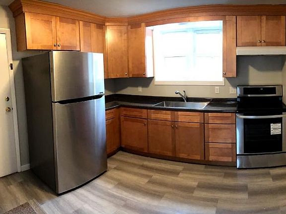 Property Id: 205770 Complete renovation, 2 bedroom apartment in a 6-unit building. First floor (down 1/2 flight from ground level) New Kitchen, Fridge and Range, Giant single bowl Kitchen Sink, New Bathroom (white cast iron tub is not new), new flooring throughout (laminate tiles in kitchen, carpeting in living/beds/hall, ceramic tile in bathroom), new paint, one year old gas furnace and gas water heater. CoinOp laundry is seven step down the hall. ELECTRICITY IS INCLUDED Approximately 630 sq ft Rooms: Kitchen- 10' 9" x 10' 3" Living- 19' 1" x 10' 10" Bedroom- 10' 3" x 9' 3" Bedroom- 10' 3" x 10' 4"