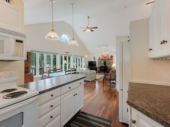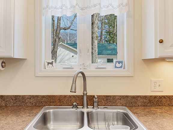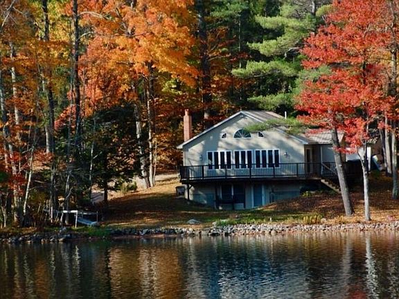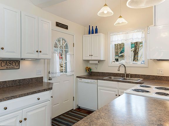 This year-round waterfront property is nestled on the picturesque shores of Parker Pond in Casco, Maine. It offers 2 bedrooms, 1 full bathroom equipped with a washer and dryer, forced hot air heat and central air conditioning. A wood stove in the living room opens like a fireplace for a cozy night in. The open concept design adorned with cathedral ceilings offers an abundance of natural light and stunning panoramic views making this a quintessential lakeside retreat. The unique features of the property offer a possible loft expansion above the bedrooms and a large basement area with endless possibilities giving you walkout access to the water. It is an ideal spot for hosting family and friends during those cherished summer weekends. The exterior of this property is just as captivating as the interior. A private dock awaits on the water's edge, providing easy access for boating, swimming, and soaking in the sun. A spacious wrap around deck offers the perfect setting for outdoor dining, lounging, and taking in the natural beauty of Quito Mountain. Spend evenings gathered around the firepit nestled in the front yard listening to the beautiful call of the loons, and if you are lucky, you may even be treated to the majestic sight of an eagle soaring above. The changing seasons provide an ever-evolving canvas of natural wonder. This property offers a year-round paradise for outdoor enthusiasts while still being in close proximity to Portland.