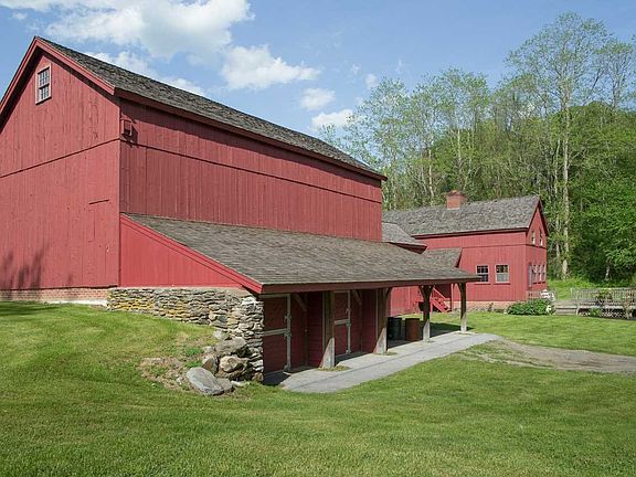 AVAILABLE IMMEDIATELY FOR YEARLY RENTAL. The Red Barn stands out against the sun drenched green of the surrounding meadowland. Set on six acres in scenic Clove Valley, with hilltop access to a private lake, including dock, picnic area, and changing room, the Red Barn is rustic folk architecture with enough modern comfort, privacy, and space to make it the ideal home for a discerning lover of the pastoral. With wide plank flooring and many windows, the airy interior is replete with rustic touches, including exposed hand-hewn mantle and beams and tongue-in-groove farmhouse doors with original cast iron hardware. Additional special touches: stone fireplace and outdoor shower. The country kitchen overlooks the countryside and has a full closet pantry and tile counter. A dining room off the central hall is close to both kitchen and large living room that overlooks a wooden deck. On the second floor, a large master bedroom, bath, and dressing room extends over the unfinished part of the original barn. There are two guest bedrooms with a shared full bath, and a sitting room. Every room has a more soothing bucolic view than the last, making Red Barn a timeless country retreat just minutes from convenient shopping and close to Millbrook, NY. Includes mowing and plowing. Tenant pays all other utilities and services.