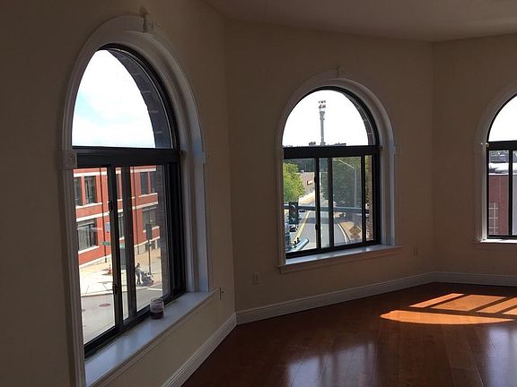 Updated one bedroom condo on top floor, corner location features high ceilings, floor to ceiling windows, gleaming wood floors, new kitchen with granite counter tops, new bath, laundry room, central air, all in historic Times building with elevator, security cameras, and one parking space in a fenced-in secure area (right behind fire station on Pleasant St). Nice views of downtown Brockton from this condo. Extra storage space is included in this 16 unit building. Heat is included in condo fees