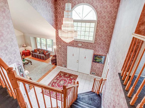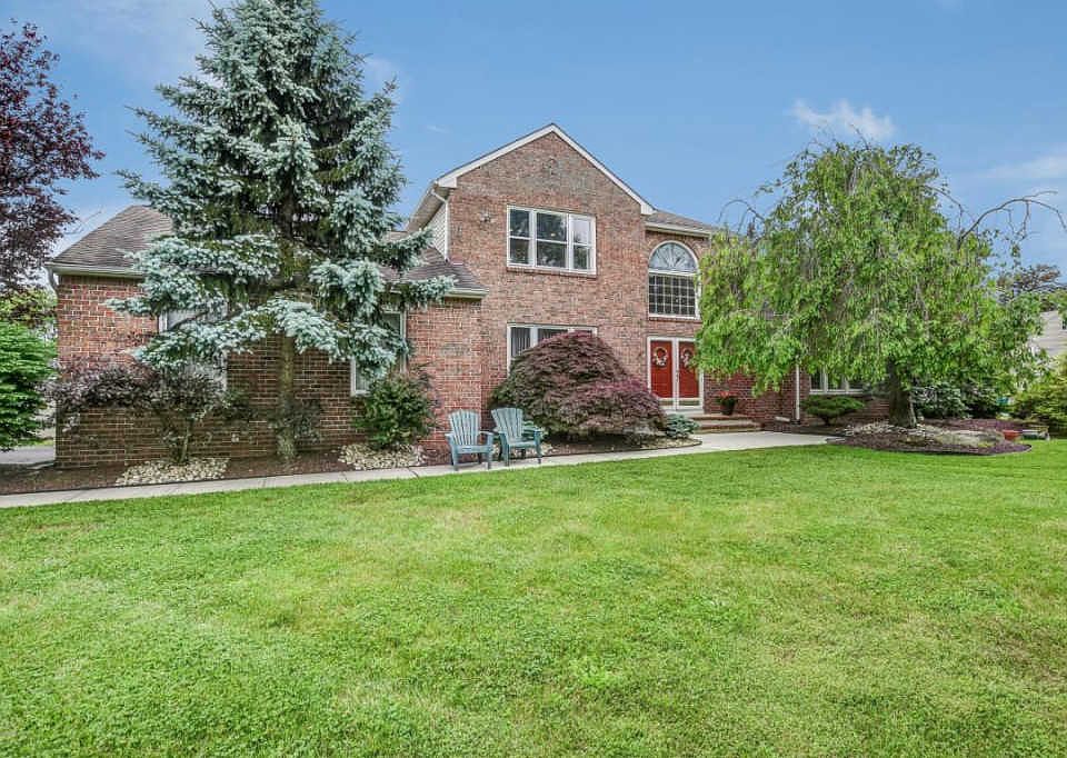 WOW fabulous price adjustment for this Beautiful Spacious Full Brick Front 5 bedroom 2 1/2 bathroom colonial with 2 car side entry garage set on gorgeous property. Country club fenced backyard with fabulous free form gunite pool. Double entry doors leads to a dramatic 2 story entrance foyer w/chandelier, hardwood floors in living room, formal dining room & family room, study. Vaulted ceiling in living room. Office/study/bedroom on 1st level, 2 zone heating & air conditioning, spacious kitchen with bump out bay sliding glass doors leading to deck backyard, spacious family room with full custom stone wall fireplace, triple sliding glass doors also leads to deck, master bedroom suite has vaulted ceilings, full bathroom w/tub & stall shower. Full basement. All this and more will make this