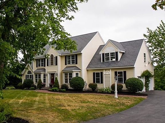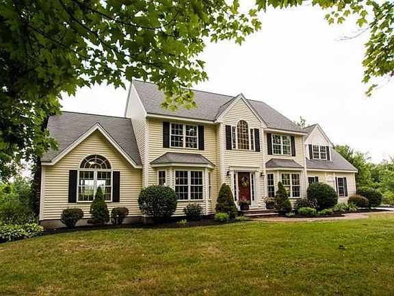Elegance abounds in this exceptional, center entrance four bedroom colonial. Pleasantly situated on 1.87 acres of picturesque land overlooking a meadow, this home boasts a modern, highly functional floor plan. The first floor features an oversized eat in kitchen with granite counters, center island, cast iron farm sink and pantry for added storage, Bosch gas stove top and duel wall ovens. A formal dining room suited for entertaining large groups with wainscoting and french doors. Front to back living room with cathedral ceiling with a gas heated fireplace and oversized windows. First floor also has a full bathroom with laundry. Gleaming hardwood floors run throughout the entire house. A bright open foyer and stairs leads to three oversized bedrooms and large full bathroom with duel sinks, granite and tile.The master bedroom has two walk in closets, gas heated fireplace with custom mantel and an on suite bath with duel sinks and jacuzzi. Included also is an attached two car garage