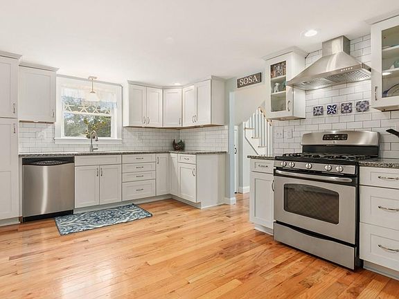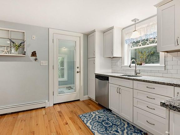Nature & serenity abound with this beautifully renovated, three-bedroom, two-bath Bungalow. The main level welcomes you with a bright & fluent floor plan - meticulously remodeled, eat-in kitchen with granite countertops, gleaming hardwood floors, recessed lighting, stainless appliances & gas cooking - easily accessible from the living room or spacious, entry mudroom. The living room presents a sun-drenched space characterized with a statement wood-burning fireplace with white brick spanning from floor to ceiling. The second level offers convenience & privacy - master bedroom with attached en-suite bath & two additional bedrooms. Outdoor living has no limits, offering a fully fenced, sprawling yard. Appreciate the mild fall days from one of two large deck areas. This home offers exclusive, right-of-way access and stunning scenic views of Country Pond and newly installed septic. Just minutes away from the local beach & recreation area, walking/hiking trails & close proximity to Rt. 495.