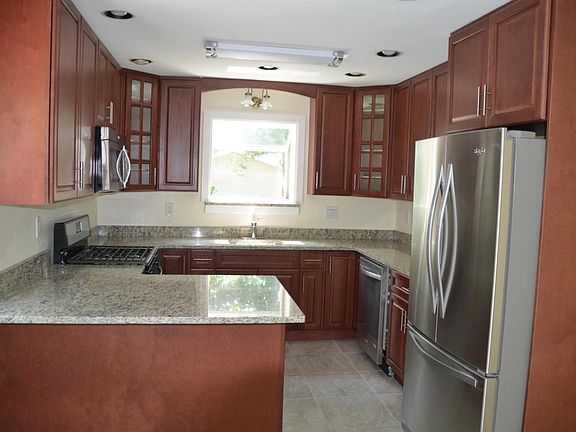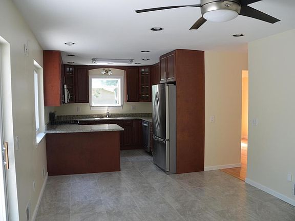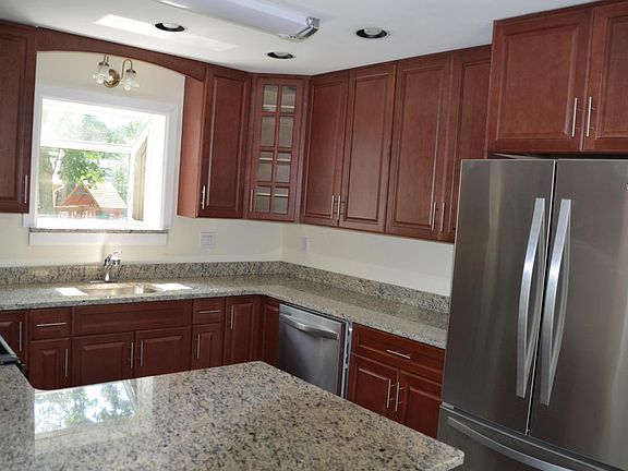 Situated on a secluded Cul-de-sac, sits this 3 bedroom 1.5 bath home. This home features hardwood floors in the living and dining room, a beautiful, completely new kitchen with stainless steel appliances and granite counters. Upstairs you will find (3) nice sized bedrooms and a new full bath. Half of one of the garages has been converted to a bonus room, could possibly be used as a fourth bedroom. There is also a large finished basement with bilco doors leading to the backyard. Outside you will find a spacious property, large deck and hot tub, which is in as-is condition. Plenty of room to entertain or add a pool. Don't miss out on the great location of this home.