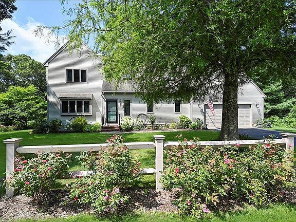 Nestled in the Marian Lane cul-de-sac, abutting a cranberry bog sits this private oasis offering a 3 bedroom, 2.5 bath Cape with a 22 x 24 two car attached garage a 16 x 16 covered back porch. The kitchen has been masterfully upgraded to include all new cabinetry, high end Thermador stove, hood dishwasher, built-in Bosch refrigerator, granite countertops an open floor plan into the living family rooms. This property has been lovingly maintained includes the following features: plenty of storage, exterior is red cedar, there are 2 mini split ac units, foyer light switch for 2 outside boxes for Christmas lights, circuit breaker box has a surge protector, radon remediation system in basement, Anderson windows throughout, 6 zone irrigation system, large back yard, shed, gardening area, seamless aluminum gutters downspouts with gutter pro leaf guards, wood burning fireplace with pipe run under deck for propane gas log, beautiful landscaping tops it all off! Title 5 approved.