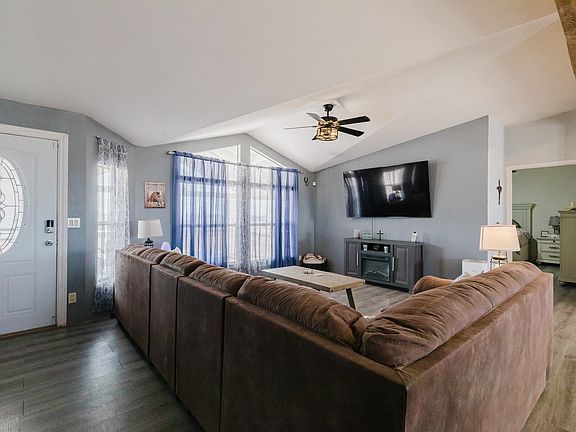 $3,000 credit offered to buyer! Don't miss out on this lovely property, set on just over 2 acres with breathtaking mountain views, this spacious 5-bedroom home offers over 2,300 square feet of comfortable living space—perfect for those seeking the peace of country life with the convenience of nearby urban amenities. Step inside to a warm and inviting farmhouse-style great room featuring an open layout ideal for gathering and entertaining. The large kitchen includes a pantry and opens to a generous dining area complete with built-in cabinetry. The split floorplan offers privacy, with the primary suite on one side of the home, featuring a spacious ensuite bathroom with a double-sink vanity and a large walk-in shower. On the opposite side, you'll find four additional bedrooms and a second full bathroom with an oversized tiled shower. Closet space is abundant throughout the home. A bonus room with a fireplace provides flexibility as a second living area, office, or even extra sleeping quarters. Enjoy quiet mornings or peaceful evenings on the large covered porch, perfect for taking in the mountain scenery. Outside, the property is fully fenced and includes RV parking with both 30-amp and 50-amp hookups. There's also a two-vehicle carport with an attached storage area equipped with electricity. Three solar arena lights have been installed, and the horse pens are negotiable with the right offer.