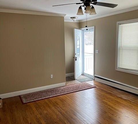 Adorable 2 bedroom ranch on .34 acre lot with 1 car garage under. Nice hardwood flooring and tile flooring, newer deck, vinyl siding, vinyl windows and roof replaced approximately 2014. There is an enclosed porch with slider to deck. House will be freshly painted inside including ceilings-painters starting on Friday. Nothing to do here but move in. Nice location just outside of Ledyard Center with easy access to major hwys and major employers.