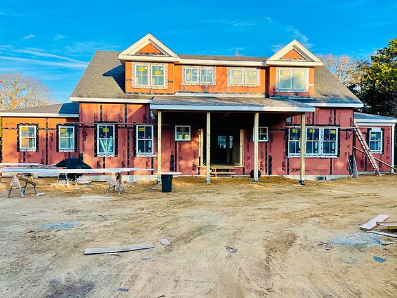 Welcome to this coastal chic farmhouse set in the heart of Katama, a few blocks from the Field Club, close to SOUTH BEACH and close to Edgartown Village. To be built is a four bedroom en-suite home with a heated saltwater POOL. This home sits upon a flat, beautiful parcel of land with mature trees. The facade of the home offers an inviting covered porch with free standing columns, a granite entry step, mahogany decking and shiplapped ceiling. The expansive entry foyer presents with a spectacular great room ahead. The great room offers a large lounge area with a gas fireplace and a wall of sliding glass doors leading to the outdoor entertaining and pool area. The great room opens to the dining room which features a wall of windows. The dining room flows into the gourmet kitchen which features a kitchen island that can seat at least four. From the kitchen area there is easy access to the smartly designed mudroom which offers a walk in pantry with an additional refrigerator, a half bath, laundry and closet area. Off the mudroom area is a large outdoor shower with quick access to the heated saltwater pool. The first floor hosts the primary bedroom with a luxurious bathroom featuring a soaking tub, oversized tile and glass shower, a two sink vanity. Two custom built closets are found in this primary bedroom en-suite offering plenty of storage. The second floor offers three guest rooms, each with their own private bathroom. Central to the three guests suites is a large lounge area. The exterior of the home, with its mature trees, cobblestone and pea stone driveway show off the homes architecture and is framed by its landscape. In the rear yard you experience privacy in the salt water heated pool which is surrounded by bluestone and professional landscaping. A true gem of an offering!