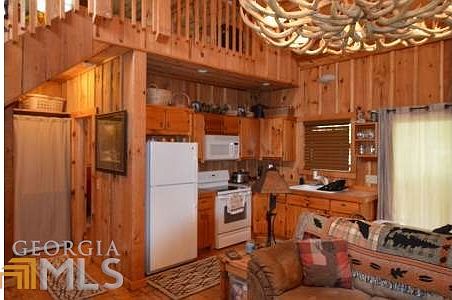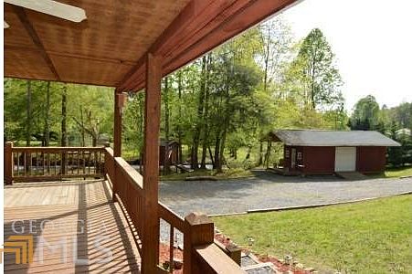 Trout Fish in TUSQUITTEE CREEK Over 175 feet of creek frontage. Perfect cabin 2 bedrooms 1 bath with cozy family room, open kitchen and dining area. Large wrap around covered deck with hot tub overlooking the creek. Fire pit, treehouse and large barn with workshop. Great chance to own on the creek!