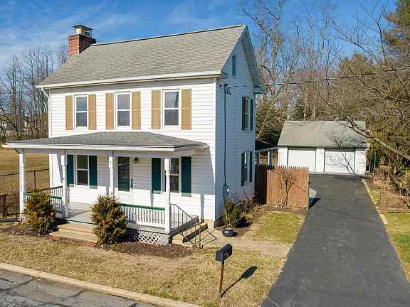 Wonderful location; quiet street (no thru traffic) next to the school grounds. Classic porch house with some improvements over the years. Large lot, detached oversize garage with loft, paved driveway with additional parking. Affordable starter home in a great location all in Walkersville school district.