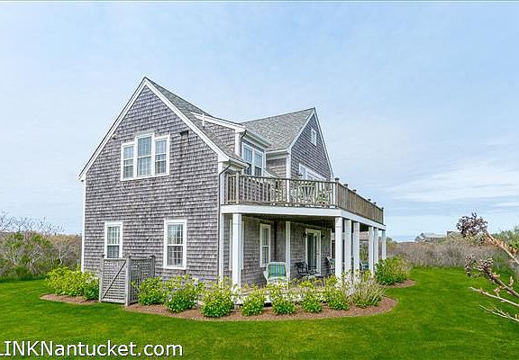 Looking for a Nantucket beach house? This is it! Seconds from the beach with access via Land Bank maintained steps. This home offers a very comfortable and open layout for indoor and outdoor living. There are second floor ocean views and you can hear the surf throughout the property. There are large decks and porches and a big lawn area for outdoor enjoyment. There are cathedral ceilings in both the main living area and the master suite, and both have peeks of the ocean through glass doors and windows. The first floor has a very nice layout, with a large central foyer and family room in the middle. One bedroom serves as a secondary master or guest suite with a private bath, while the other two share a large hall bath. The home has a strong rental history and is being sold furnished.
