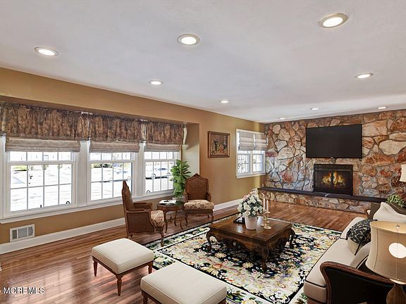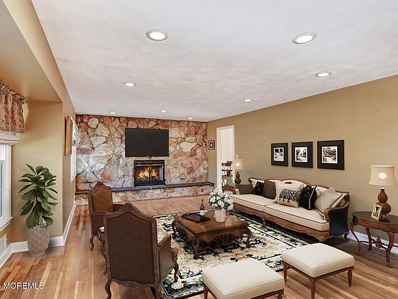 Nestled in the heart of Morganville, NJ, this stunning expanded ranch home offers a perfect blend of luxury and comfort, making it an ideal sanctuary for modern living. This beautifully updated residence features four spacious bedrooms and three full bathrooms, ensuring ample space for family and guests. With its impressive layout and inviting atmosphere, this home is designed for entertaining and relaxation alike. As you enter, you are greeted by a bright and airy interior highlighted by vaulted ceilings and recessed lighting. The formal living room serves as a welcoming focal point, with its charming stone accent wall and a cozy wood-burning fireplace that creates a warm ambiance for gatherings. The adjoining formal dining room provides an elegant setting for memorable meals with loved ones.