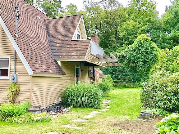 Welcome home to this adorable country cape. Home is move in ready. Just unpack and relax in your quiet cul de sac. Outside you'll have over an acre of beautiful property with a gorgeous pergola and enormous patio area. A huge garage with 10 foot doors and parking for 10+ cars, as well as a brand new septic system. BONUS you have deeded beach rights to your very own beach area, with picnic benches. Step inside the front door and you'll walk into your open concept living room with fireplace, dining room and kitchen. go around the corner to find a nicely updated bathroom and the first bedroom. Head up stairs and you'll have the second full bath and the master bedroom to the right with cathedral ceilings and a beautiful balcony. Across the hall is the spacious 3rd bedroom. Bonus area in basement is a finished bar area and office space. Won't last long, don't hesitate, set up your showing today!!