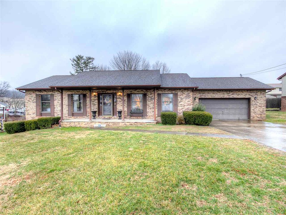 All brick 3 bedroom rancher on nice level lot w/full walk out basement! Main level living with all hardwood floors, newer ceramic tiled wet areas, foyer & lower level, newer stainless appliances, new countertops, tiled backsplash, granite bath counters & new vanities, cozy fireplace in dining room w/buck stove, dining room open to kitchen, rear storage building, spacious covered rear porch, all new lighting, new hardwood basement steps, home warranty with first class upgrade! This home has it all!
