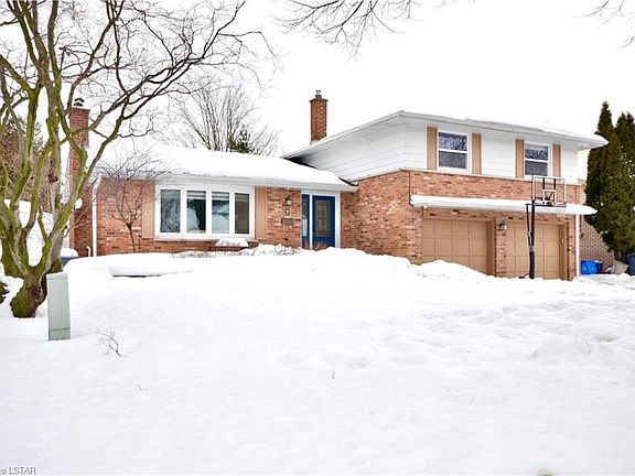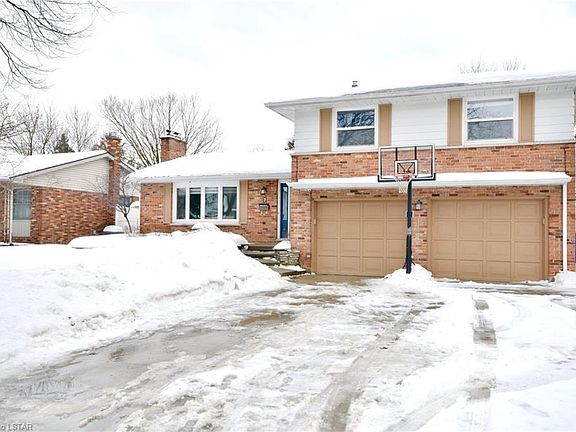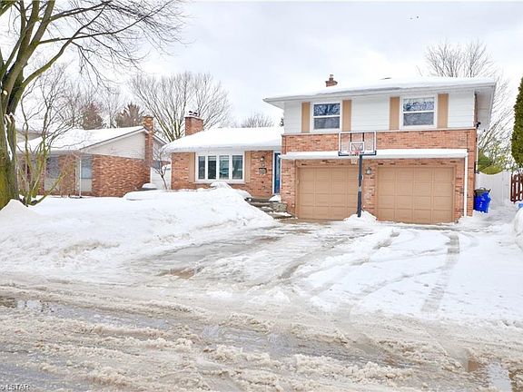 Welcome to this gorgeous 4+1 home on a quiet Crescent in beautiful Stoneybrook. This fine family home has been lovingly cared for and extensively upgraded in the past several years. Bright and spacious throughout, this home features a stunning kitchen highlighted with contemporary white cabinetry and quartz countertops and backsplash. The large eating area is open to the kitchen and features patio doors that lead to a fabulous rear yard, fabulous gazebo and expansive concrete patio and hot tub. Upstairs you will find a large master bedroom as well as 3 other sizable bedrooms, newer 5-piece bath plus an extra whatever closet. The third level has a fabulous 3-piece with large shower, the fifth bedroom, and convenient laundry room, and direct access to the large 2 car garage. Lower level has a large recreation room and ideal office. Some other upgrades include replacement windows, porcelain tiles in entrance and kitchen, all appliances, large shed in rear yard, gas heater in garage which would be ideal for working on cars or workshop. Concrete driveway for 6 cars, security camera system, newer breaker panel and much more. A wonderful family home, just 3 minutes walk to the public school.