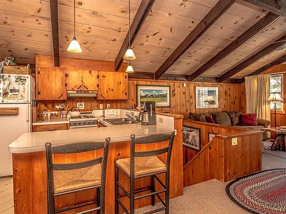 Cozy North Conway chalet at the base of Cathedral Ledge with a view. Hike, climb, bike, ski & swim from your front door. 3 Bed, 1 Bath w/ open living/dining/kitchen, cathedral ceilings, wood stove & a large deck.