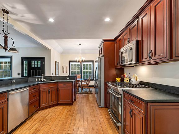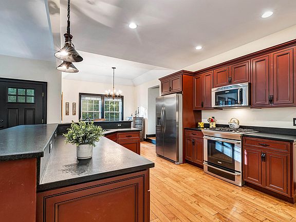 Welcome to 7 Merry Hill Road, nestled on 2 acres...This quaint 1.5 story, ranch style home offers 3 bedrooms, 2 full baths and an open concept ~ one level living lifestyle. Boasting a sun filled kitchen with stainless steel appliances, leathered granite and an expansive island perfect for casual eating and entertaining, alongside the cozy living room with gas fireplace and dining nook. Beautiful bamboo wood flooring throughout. Primary bedroom is complemented with a large bath and two large closets. Need additional space? No worries, there is the ability to finish the second level for endless possibilities: additional bedroom, bath, or bonus room. Relax and entertain on the screened-in porch, grill on the back deck overlooking the mature perennials and sweet firepit. A full unfinished basement with high ceilings is perfect as a workshop, play area or future finishing. You will appreciate this 10 year young home with a whole house generator, central air, 1st floor washer/dryer, large pantry, radon mitigation system, walk-in attic space, oversized 2 car garage and Amish shed for storage. Enjoy the best of both worlds with a peaceful country setting and a great commuter location.