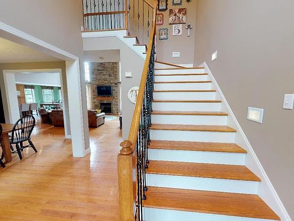 Elegant, inviting, and spacious are some words that could describe this 4 bedroom, 3.5 bath two story home offering a huge two story gathering room with thermostat controlled gas logs, an expansive stainless appliance filled kitchen with a gas oven/range, an island, and solid surface countertops. Other features include a first floor owner's suite with a huge walk-in closet and an amazing bath, a two story entry, an abundance of attic storage, a large deck overlooking the level backyard, an Eagle Premier 12 Month First American Home Warranty, and much more! Call for your personal tour today!