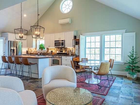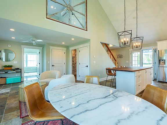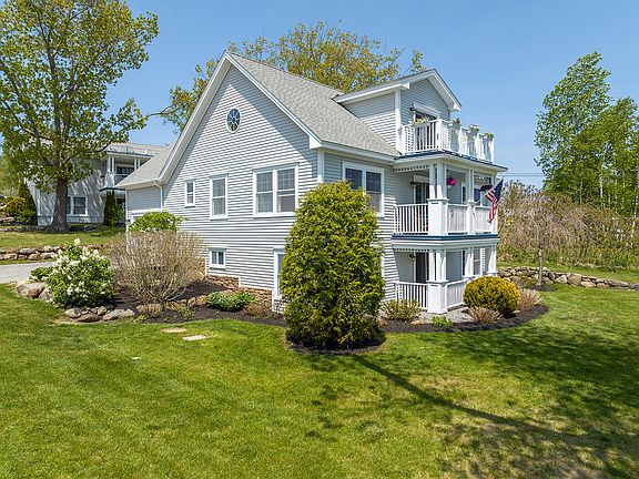 Stunning Contemporary Rockport home with one-floor living and many custom features throughout. The first floor features an eat-in kitchen with granite counters, a custom walnut island, slate floors, and stainless steel appliances. The open floor plan incorporates a dining/living area, a laundry, a half bath, a beautiful front deck, a sizeable primary suite with a sitting area, two spacious closets, and an attached bathroom featuring a custom shower. Downstairs you will find a cozy living room and two large bedrooms, each with a private full bath. The third story features an extra bedroom or office space with distant views of Penobscot Bay from the balcony. This property is centrally located between Camden and Rockland and has many homeowner association amenities, including a beautiful pool.