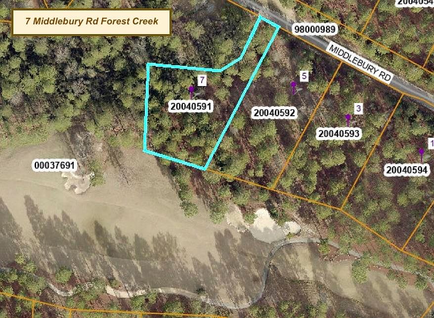 Rare find & opportunity! Throughout the Pinehurst area, which is often referred to as the Home of American Golf (r), premier golf front lots are very limited. Look no further for your premier golf front lot in the exclusive gated community of Forest Creek. Forest Creek is a private gated community of 1,265 acres with 750 residential lots. Within this exclusive community the 7 Middlebury Rd lot is ~0.80 an acre positioned on the 5th hole of the Tom Fazio designed North Course. In 2005 when the North Course opened it quickly became in the top 100 residential courses. This lot has been previously surveyed and through the initial surveyor there is a re-survey service available at a reduced fee for the future buyer. Forest Creek Golf Club membership available but not required.