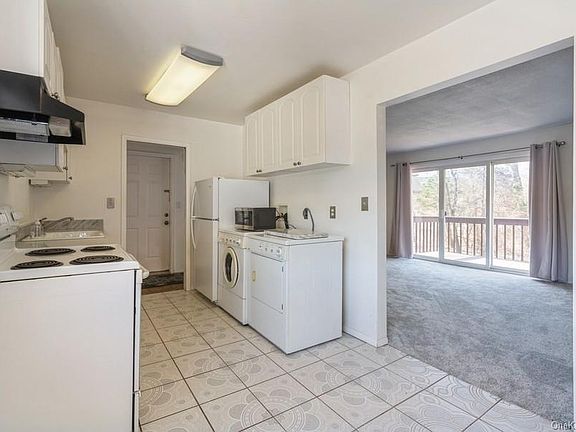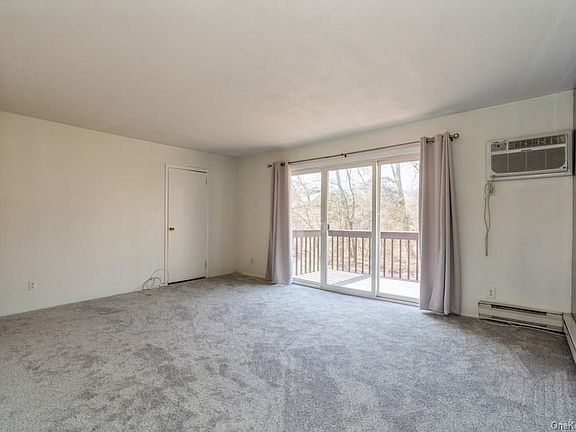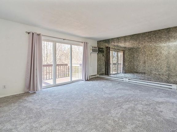 In Fishkill 1BR, 1bath Condo w/ 654sqft. w/ new wall to wall carpet, meticulously maintained unit. This amazing property offers Kitchen W/ granite countertops, mirror walls in living room w. sliding doors to balcony for fresh air and views to huge backyard. Bedroom w. great closet space. Bath with oversized tub and entrance to bedroom & kitchen, plenty of natural light. New AC in bedroom, new hot water heater, deck was refurbished with new wood on railings and repainted .This complex also has your own community pool & tennis courts for entertainment. near Rte-52, close to park, shops, railroad, school, bus & mins to I-84. Perfect condo waiting to be yours. Wont last!!! Taxes do not reflect STAR savings of $600.