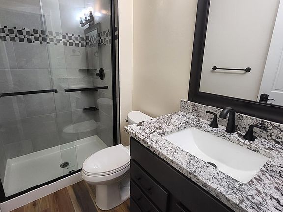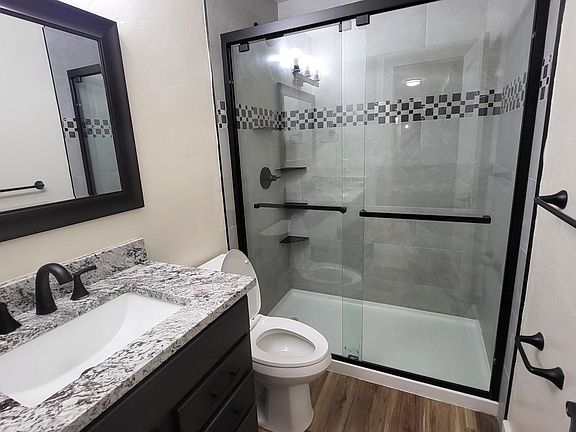 Bathrooms with granite countertopsYard with horseshoe pitsExterior storage for bikesNewer appliances