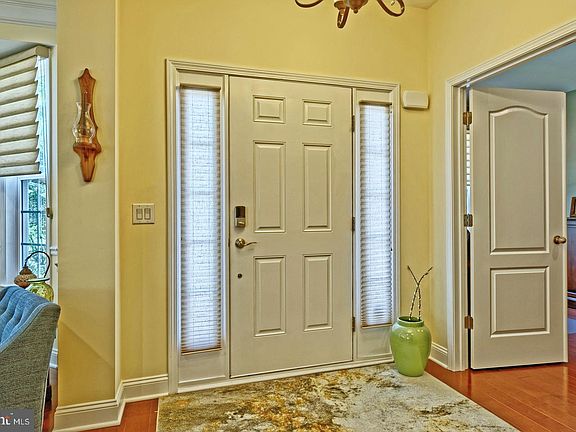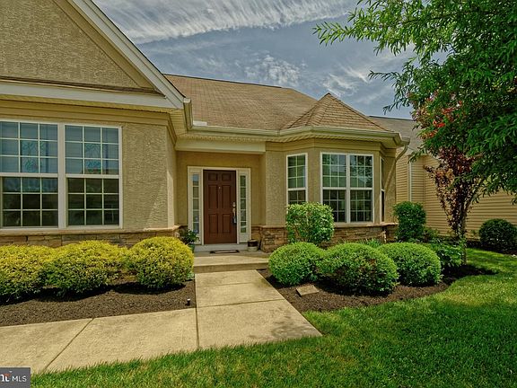 Available now in the highly sought-after 55+ neighborhood of Wildflowers this ranch style home offers 2,253 square feet of upgraded living space. Dark engineered hardwoods throughout. The formal living room and dining room have 9' ceilings and custom moldings. Gourmet kitchen with Quartz counter tops, snack bar, glass tile backsplash, upgraded stainless steel appliances and wine fridge. Huge family room with gas fireplace, plenty of natural lighting and door leading to covered patio. Primary suite has luxury bathroom and custom window treatments. Walk up attic, laundry room and 2-car garage. The solar panels are lease for $93 a month. Great location for active adults. Close to restaurants, shopping and golf courses. Easy commute to the city or shore.