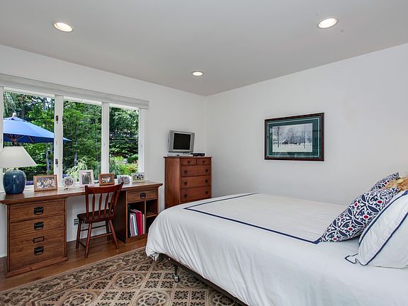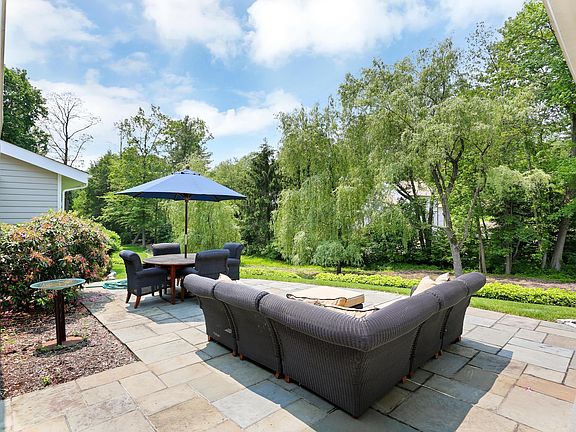 Dramatic 4/5 bedroom home with 4 full baths, ranch style living. Hardwood floors, skylights, wall of glass doors and windows, freshly painted, builtins, sunny eat in kitchen. Open formal rooms, sunny casual rooms, 2 fireplaces, 2 terraces, 2 decks, master suite overlooking the private backyard. Stonewalls and freshly paved driveway lead you to the front door. Located on a cul-de-sac just minutes from the Avenue, schools and train.