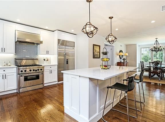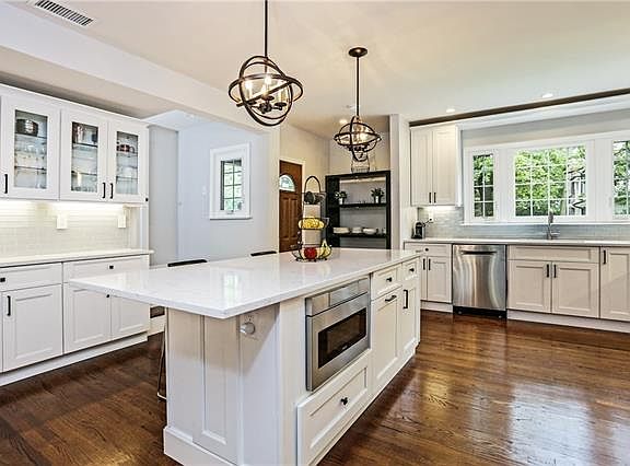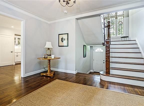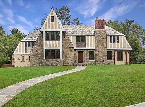 Stunningly renovated and restored Lawrence Park Tudor on .52 level acres. Elegant entry hall, large sun-lit living room with floor to ceiling stone wood burning fireplace leading to sunroom with doors to level backyard and patio, powder room, dining room open to renovated kitchen with island and stainless steel appliances, including a SubZero refrigerator, quartz counters, glass backsplash, door to backyard and two car attached garage. Upstairs to a luxurious master suite with high ceilings and beautiful new master bath, three additional bedrooms with new bath, down a few steps to two additional bedrooms or home offices with another new bath and back stairs leading to kitchen. The lower level boasts a finished playroom with fireplace, large open space, laundry, and a powder room. This fabulous home has all new windows, plumbing and electrical. Don't miss this special home where old elegance is combined with a state of the art renovation!