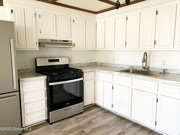 Relax in this cozy, updated and move-in ready home. The kitchen features brand-new appliances including refrigerator, gas range and new counter tops. Enjoy the new laminate flooring on the first level. This home features 3 bed rooms, 1 bathroom, loads of space for entertaining with a large dinning room, living room, and south-facing sunroom with lots of windows and a wood burning stove. Live in year-round and worry-free comfort with brand new high-efficiency central heat and air conditioning. The roof has just been redone with 50 year shingles. The attached tandem garage (2 deep) provides loads of space for parking or storage.