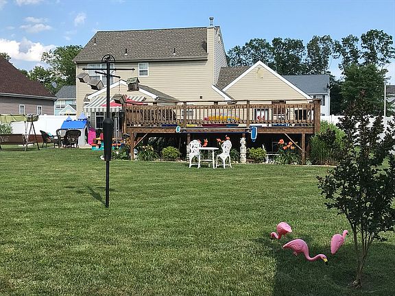 Cozy updated 3 bedroom home backing private wooded nature preserve with 18’ x 32’ above ground pool and large shed. Updates since purchase in 3/2013 include new roof with 2 new skylights in family room, new front door & storm door, new rear sliding patio door; new granite countertops, dishwasher & garbage disposal; new batt insulation and sump pump in crawl space, new electric outlets on first floor, new brass plates for electric outlets & light switches throughout, new Carrier gas furnace & central air conditioner, new dryer, new blinds throughout, and new white vinyl fence enclosing rear yard, new cedar play set. Features include cherry hardwood flooring in living & dining rooms, laminate tile flooring in kitchen & breakfast area, wood laminate flooring and 2 walk-in closets in master bedroom; ceiling fans in breakfast area, family room, den and all bedrooms; breakfast counter in kitchen, den in rear portion of garage with gas fireplace, large storage area in front area of garage, underground lawn irrigation system, central ADT security alarm system, rear concrete patio with retractable awning, 4 car parking in driveway,