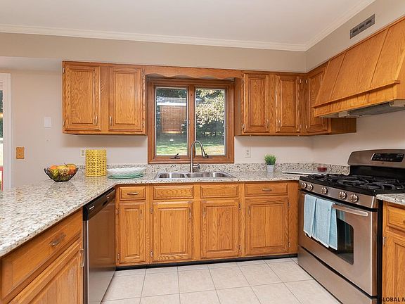Wonderful 4 large bedroom, 2.5 BA Colonial on a cul de sac in a desirable Menands neighborhood. 7 Mountain View offers comfortable generous spaces and great flow for living and entertaining. Have breakfast in your eat-in kitchen & dinner/holiday's in the formal dining rm. The sunken family rm features a masonry fireplace as its focal point for an intimate & cozy feeling while the spacious living rm offers a formal/versatile space. 1st floor laundry. Deck overlooking spacious backyard. Master en suite w/walk-in. John Deere riding lawn mower (only 35 hours) and attachable cart comes with your new home. Never used stainless steel refrigerator. Furnace 2019, Roof 2007, Central Air 2011. Home was pre-inspected and ready for you and your loved ones! Choice of 5 High Schools including Shaker
