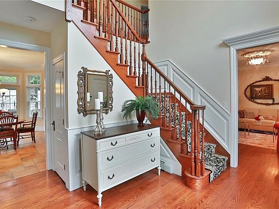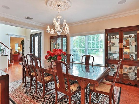 Elegant, five bedroom colonial on picturesque cul-de-sac. Stunning 2 story entry with soaring ceilings. All top of the line stainless steel Dacor and Subzero appliances, oak hardwood floors, Quakermaid - maple kitchen cabinets with elegantly edged granite counters. Family room features a Mendota gas fireplace with custom mantle and granite and complete surround sound capacity. Stately living room and dining room with custom moldings. Designer, Hunter Douglas window treatments. Crown moldings galore on all levels and in all rooms. Master bedroom suite with custom tray ceiling, two- custom walk-in closets. Oversized marble master bath with jacuzzi and oversized walk-in shower with large custom plumbing fixtures. Fabulously tiled baths, fully finished basement with dimmable theater lighting and complete surround sound system. This home is over 4900 SF of living area. Transom Anderson windows, fully fenced, sprinklers, alarm, bluestone walkways and patio.