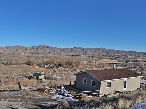 Country living at its best. 4.46 deeded acres with a comfortable home, a spacious 2 car detached insulated garage/shop with shelving/cabinets and plumbed for natural gas. The property is set up for horses with a loafing shed, hay storage and a frost-free hydrant which has its own water well. A chicken coop with a frost-free hydrant and a run is all set up. The home offers an open kitchen/dining and living room area with a wood heating stove with stone accents as the centerpiece, 2 bedrooms, 1 full bathroom and laundry room all on one level. The home has had numerous upgrades including updates to the bedrooms and bathroom, newer appliances and a new roof in 2016. Natural gas has been brought to the home but is not hooked up. The home is serviced by Northwest Rural Water. The property has a fenced backyard and secure dog kennel area. The property perimeter fence is electric with a solar panel. Best of all, the property has no HOA, light covenants, gorgeous mountain views, peace and quiet and located between Powell, WY and Cody, WY just a short drive to Yellowstone National Park.