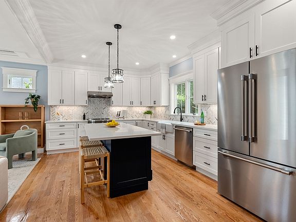 - Features: Flooring - Hardwood, Dining Area, Countertops - Stone/Granite/Solid, Kitchen Island, Open Floorplan, Recessed Lighting, Stainless Steel Appliances, Wainscoting, Lighting - Pendant, Crown Molding