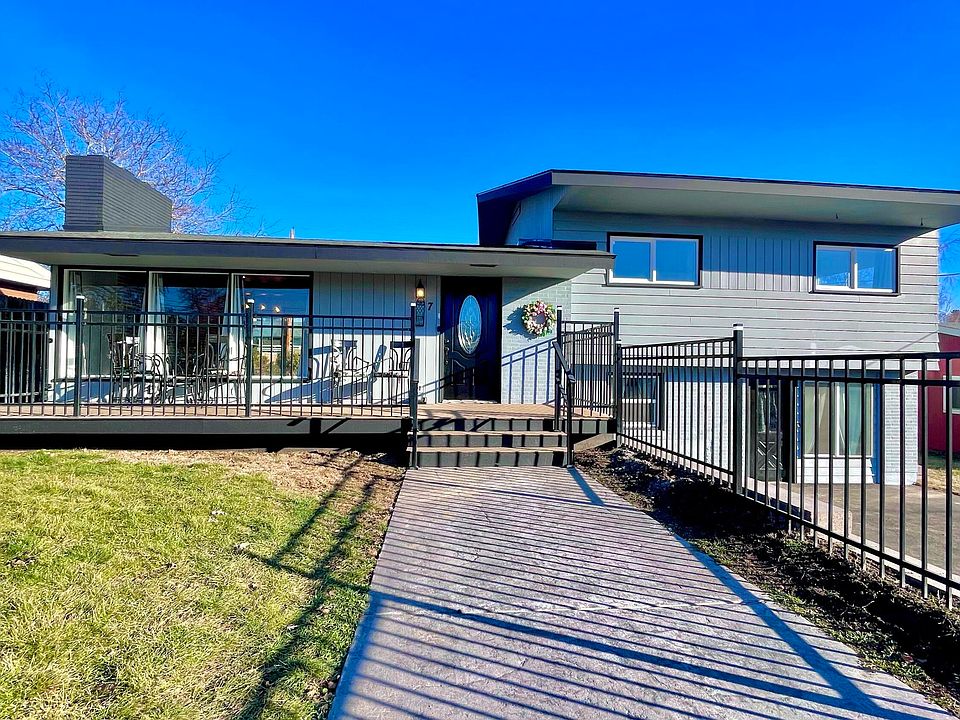 Welcome to this beautifully renovated 4-bedroom, 3-bathroom home, where modern elegance meets comfort and functionality. As you step inside, you're immediately greeted by an expansive open-concept kitchen & living area with a cozy wood-burning fireplace, perfect for relaxing or entertaining guests. Kitchen is gleaming with granite counter tops, adjustable lighting, built in pantry and beautiful appliances including a gas range-perfect for any home chef! The primary suite is a true retreat, boasting a spacious walk-in wardrobe that provides ample storage and a luxurious en-suite bathroom and private balcony. Lower level has a secondary suite with an attached bathroom and has front & back yard access. Auxiliary rooms include an additional family room/den, hobby room and a walk-through laundry room. All bathrooms as well as electrical & plumbing have been updated. Newer gas furnace & air conditioning system with a built -in air purifier. Come see what this home has to offer. Whether you're enjoying a quiet evening or hosting a gathering, this home not only offers both style and practicality; it has been thoughtfully upgraded and is ready for you to move in and enjoy!