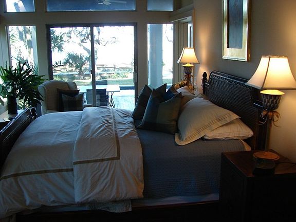 Stunning 7500 plus sq ft contemporary home with traditional flair overlooking sunsets and Calibogue Sound. 3 large living areas, 1200 sq ft kitchen/great room. Music room/office. 4 fireplaces, antique heart pine flooring, wet bar, 3 room pantry/work area. Upstairs kitchenette, laundry rooms on both levels, elevator, master suite with fireplace and sitting area, New deep water dock. 55 ft pool & fountains. Fabulous intercoastal water views.