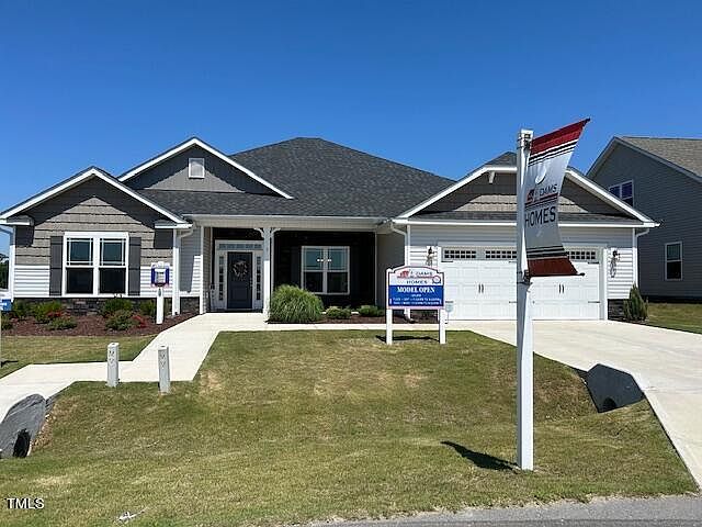 This is our model home at Charlestowne and is being sold ''as is. This is a 2,620 square foot split bedroom ranch plan with the primary and one bedroom/study on one side of the home and two secondary bedrooms on the other side of the home, separated by a large family room and kitchen. The home includes upgraded laminate flooring throughout the main living areas of the home. Kitchen includes a large island with granite counters and two pantry storage areas. Kitchen is very open and flows into the family room and breakfast area, making this a great home for entertaining. Enjoy the large 17.4x10 foot covered back porch for grilling/relaxing. The primary suite has a trey ceiling with beautiful crown molding. Relax in this primary bathroom with a separate walk in tiled shower and a soaking tub. This home has a very large primary walk in closet. This community has NO HOA fees and no city taxes and is only 6 miles from 1-95 and is very convenient to downtown Smithfield, Smithfield outlets, restaurants,& Hwy 70 business and Hwy 70 bypass. This location is very convenient to Princeton, Goldsboro, Clayton, Garner & Raleigh. Furniture is not included.