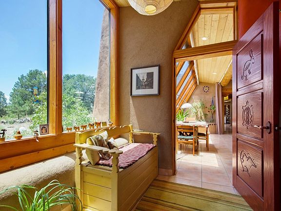 Conveniently located halfway between Taos & Ojo Caliente.This beautiful, efficient & meticulously maintained earthship situated on10.35 acres is truly a hidden gem!Nestled amongst mature P&J trees at the end of a road, this home is private, quiet & a welcomed haven from all the hustle and bustle.. Custom built in 2006 by Aaron Lewis, the 2,300 sqft home features a foyer/mud room, open living, dining & kitchen area, large bedroom, office/study & full bath. Upon entering the foyer, take in the custom carved door leading to an open & light filled space. Light colored tile floors married with the warm brown hues of the plastered walls are both warm & inviting. Custom built cabinetry by local carpenter & architectural details throughout. Cozy up to a fire in the living room or read a book by the Swiss style tile stove in the spacious bedroom. Interior floor to ceiling curtains provide additional warmth by keeping the cold out. Cool down on those warmer days by drawing the exterior blinds. The office/study offers additional room for family & friends. Fiber-optic makes working from home or remotely possible. Separate toilet room with sink, 1 propane & 1 electric refrigerator, high speed internet, solar compatible washer are just some of the extra amenities. Vintage 1970 Shasta refurbished trailer for guests for the "glamping" experience! Fenced in area keep your four-legged friends safe. Plus shared well, cisterns, 2 car carport, 1car carport (metal). Come home to Carson, NM!