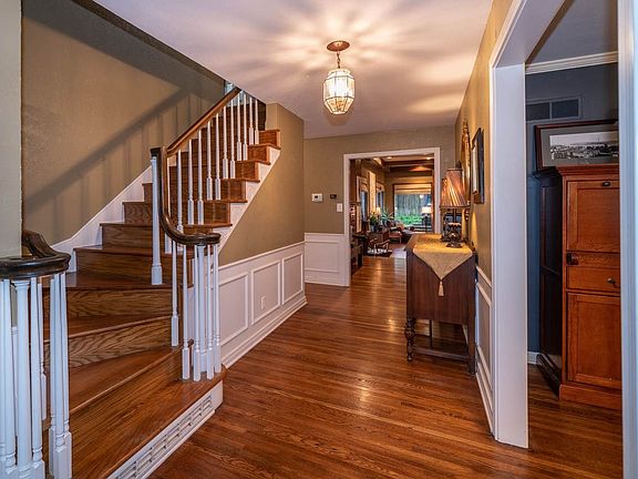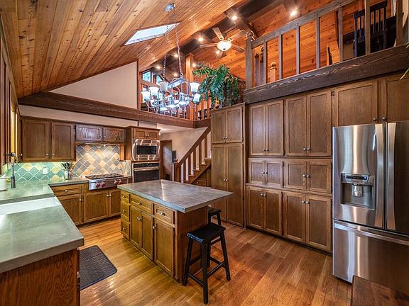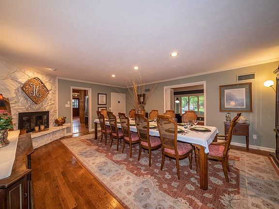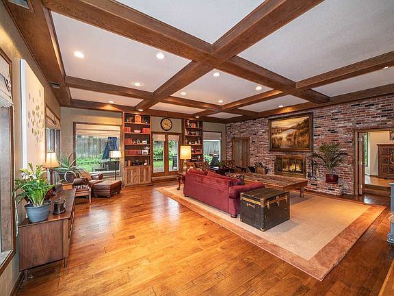 Beautifully updated 1 1/2 story situated on a lush landscaped lot complete with hardwood flooring, spacious rooms throughout, plantation shutters for added privacy, lovely living room with crown molding, fireplace with tile surround, two built-in bookshelves, massive formal dining room with fireplace with stone surround, recessed lighting, and crown molding, updated kitchen with Concrete counter tops, island, Wolf gas range, pull-out shelving in cabinets, vaulted ceiling, two skylights, under cabinet lighting, pantry with built-ins and pull-outs, and an abundance of cabinet space! The informal dining area features more pantry space and large windows overlooking the park-like backyard. Entertain with ease in this gorgeous main floor family room complete with coffered ceiling, two built-in bookcases, recessed lighting, granite wet bar, and French doors that open to the patio area. Spend peaceful nights in this spacious main floor master suite with hardwood floors, large windows, plantation shutters, two closets and a walk-in closet, French doors to your private patio area, and spa-like updated bathroom with tile flooring, tile shower, stained glass window, two sinks, and linen cabinet. The second level features four spacious bedrooms with access to the bathrooms and a loft area! So much storage space! You will love spending time out in this serene backyard with patio areas, mature landscaping, and private wood fencing.