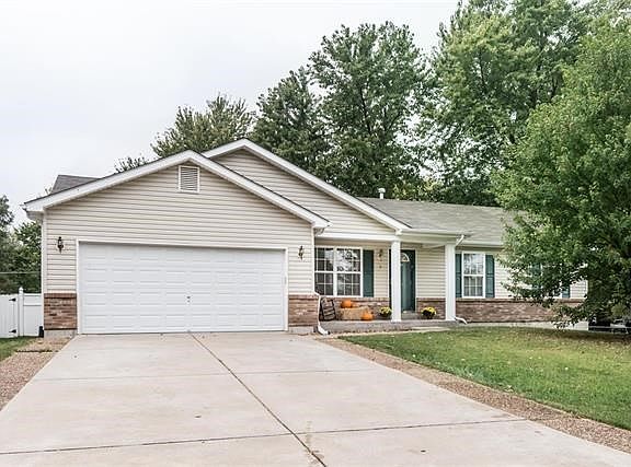 This 14 year old ranch in OFallon Hills has a newer 20 x 20 deck and a childs play set in its large fenced in back yard. The living room/dining room combo has hardwood floors and a ventless gas fireplace. The eat in kitchen has ceramic tile floor and an island with entry to the over-sized 2 car garage Main and master baths both have tub and shower. There is a rough-in for a full bath in the unfinished basement. The partial brick front with vinyl siding, enclosed soffits and fascia make this a low maintenance home.
