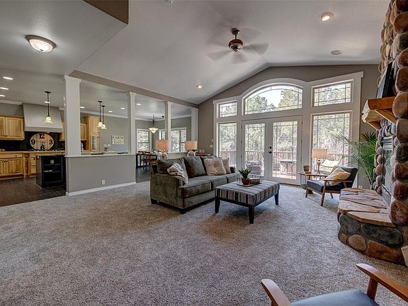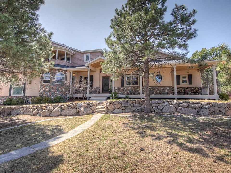 This beautiful custom home has everything you could dream of. Wrap-around porch, extra large back deck with 180 sq. ft. remote control sun shade, hot tub, 2 balconies and private roof deck. Great room with floor to ceiling stone, wood burning fireplace and french doors to back deck, vaulted ceilings. Main level, huge master suite with gas fireplace, deck access, roof access to private deck from master bath, attached office/den. Walk in shower in large 5 piece master bath. Walk-in closets in every bedroom. With 5! balconies/decks, every room has exit to outdoor living! Walk-out partially finished basement. Separate furnaces for each level. 3 oversized, vaulted-ceiling bedrooms upstairs with private, vaulted-ceiling loft space. Jack-and-Jill bathroom between two bedrooms. Built-in beds and dressers in 2 bedrooms. Laundry facilities on main and upstairs. Gourmet, open-concept kitchen with breakfast nook, mud room dining room. Smart wired home with security system and intercom. 3 car garage, one oversized garage door for camper. Tons of storage. Lawn irrigation system.