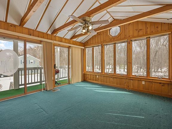 LOCATION~LOCATION~LOCATION! It’s true when you are buying real estate-location is SO important, and this is a tremendous location here. Delightful cul de sac location backs up to conserved land, and this happy home offers 3 BR and 2 BA with a wonderful heated (&cooled) sunroom overlooking a fenced backyard and wooded nature land. The house has been well-cared for and buyers will love that the primary bedroom offers ample closet space AND a full bath! The kitchen is packed with custom maple cabinets and a double sink and dishwasher. Central air, efficient gas heat, and updated windows complete the value proposition here. With additional living space provided by the sunroom and finished basement and plenty of storage & hobby space in the unfinished portion of the basement, attic, garage & jumbo “shed” located under the sunroom this is a home & location for a lifetime. Move-in ready, but you may remove the carpet to reveal the hardwood flooring we understand to be there.